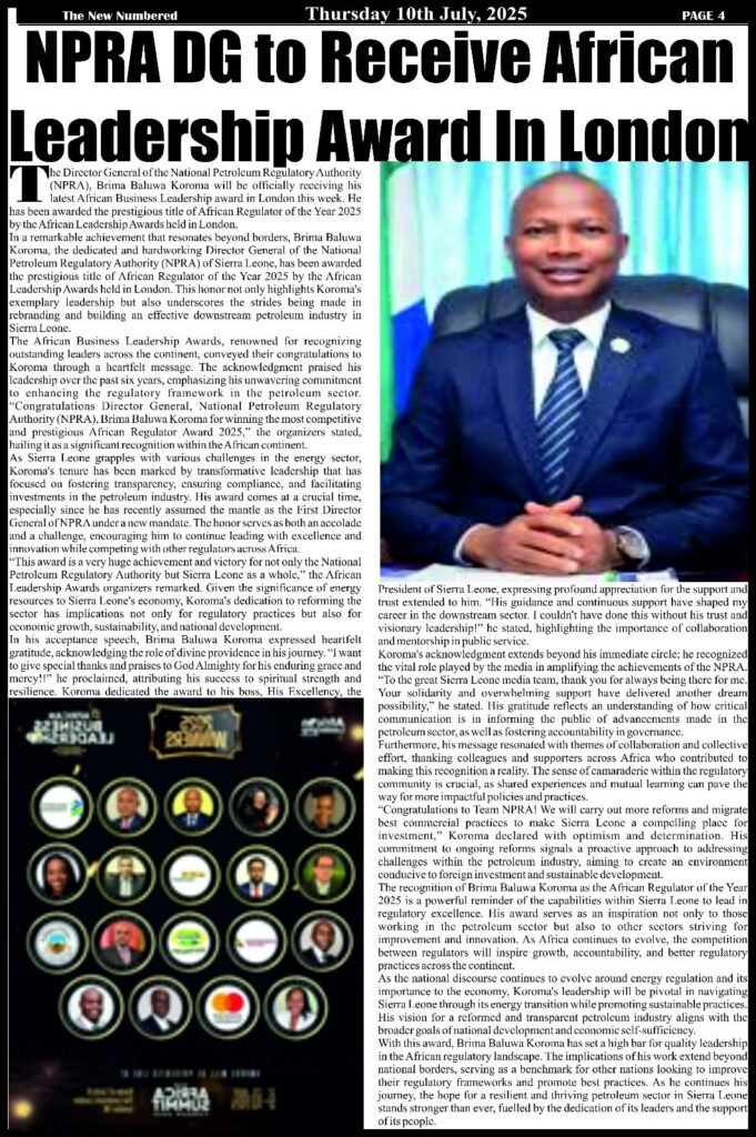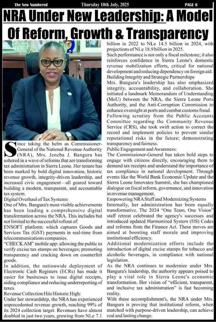 THE NEW NUMBERED NEWSPAPER 10th |July | 2025.