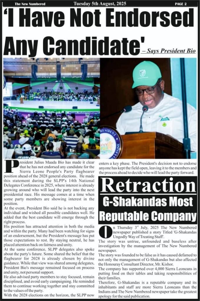 Amid growing speculation over political alliances, President Julius Maada Bio has publicly stated that he has not backed any candidate in the ongoing political discussions.