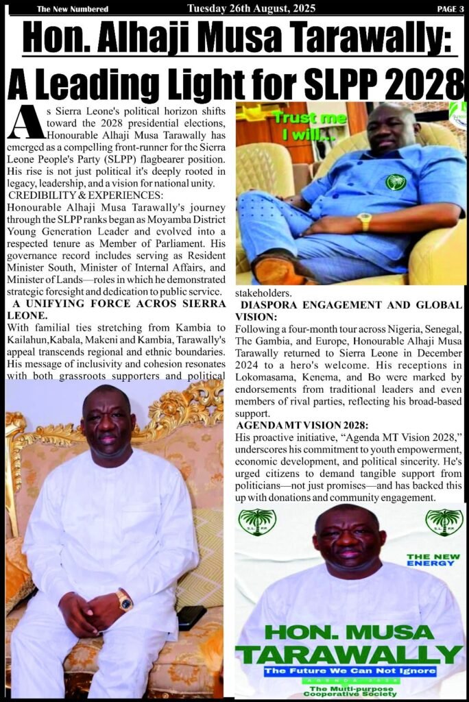 Hon. Alhaji Musa Tarawally: A Leading Light for SLPP 2028.Â