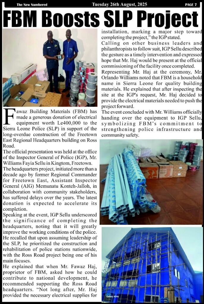 Future Builders Movement (FBM) provides key support to the Sierra Leone Police, enhancing infrastructure and logistics.Â