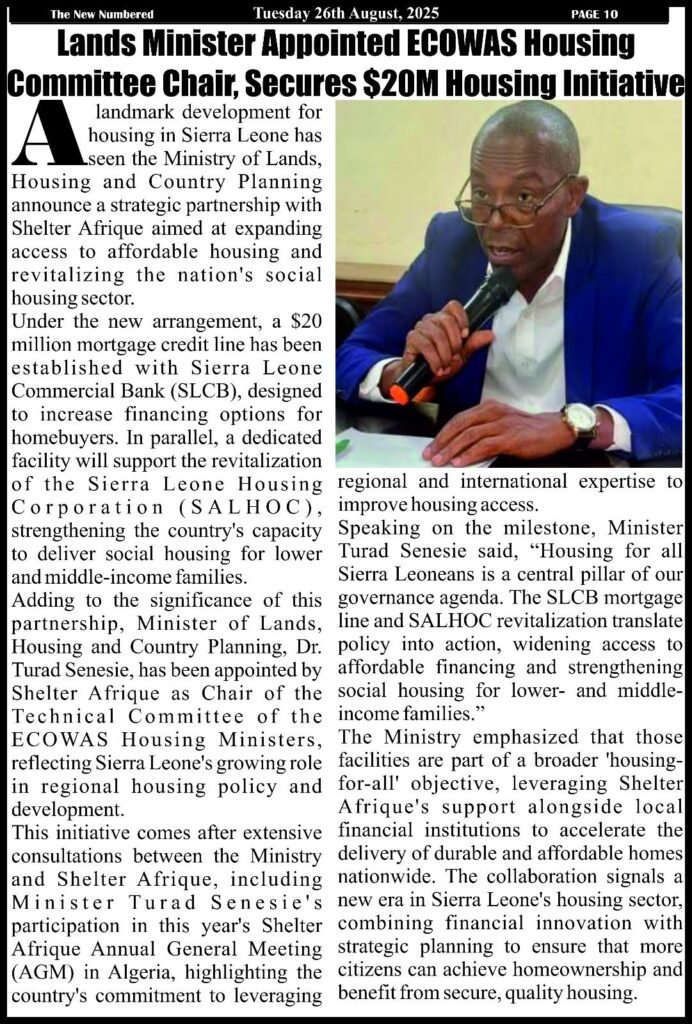 Big win for Sierra Leone as the Lands Minister takes regional leadership and delivers a major housing initiative.
