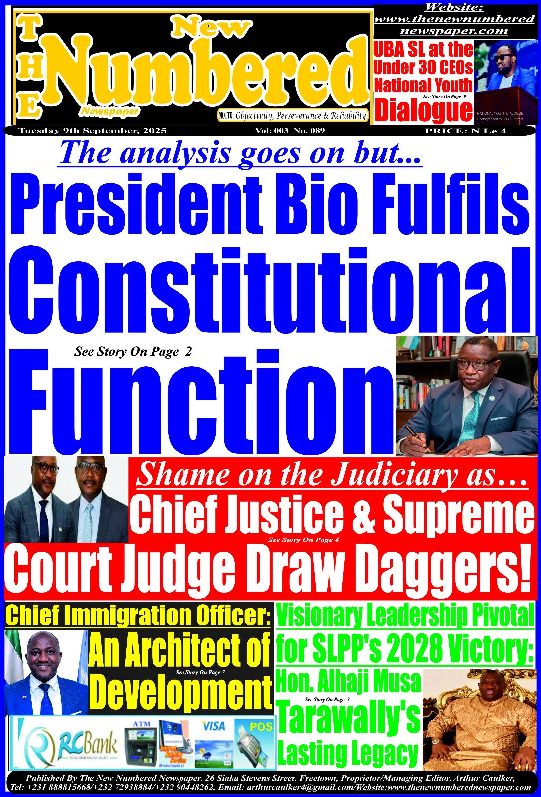 Tel: +232 888815068/+232 72938884/+232 90448262. Email: arthurcaulker4@gmail.com / Website: www.thenewnumberednewspaper.com