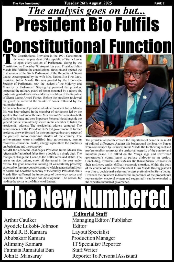 Published By The New Numbered Newspaper, 26 Siaka Stevens Street, Freetown, Proprietor/Managing Editor, Arthur Caulker